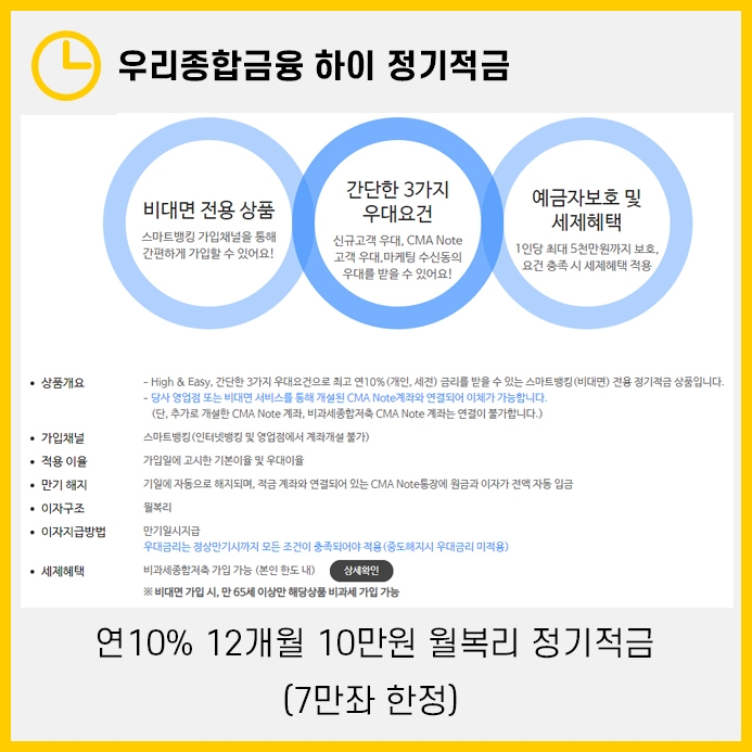 고금리 정기적금과 함께 우리종합금융 가입이벤트도 함께 제공하고 있어 지금이 가입하기 적기입니다.