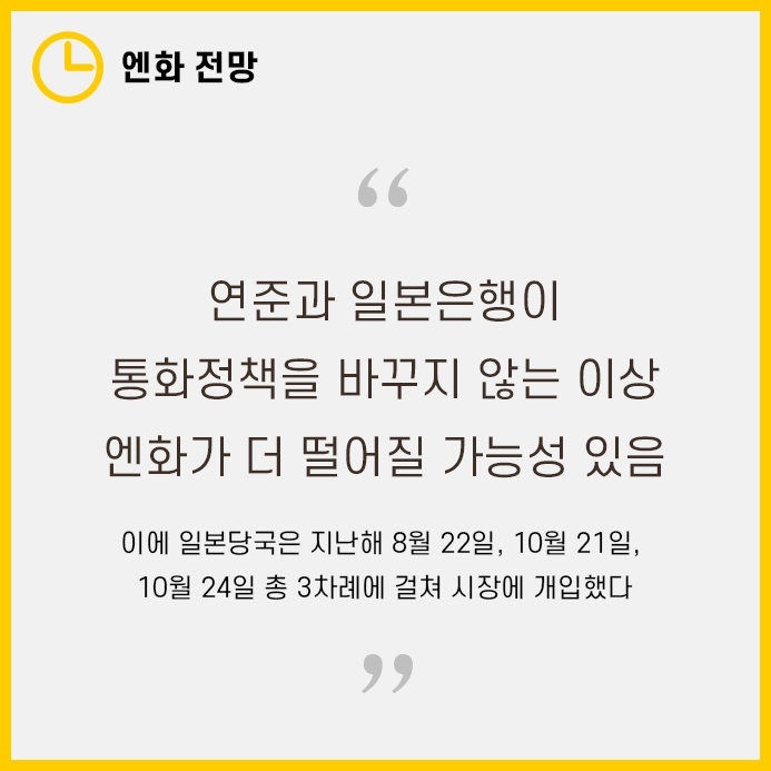 실제로 일본정부는 지난해 9월 22일, 10월 21일, 10월 24일 3차례 시장에 직접적으로 참여한 바가 있습니다.