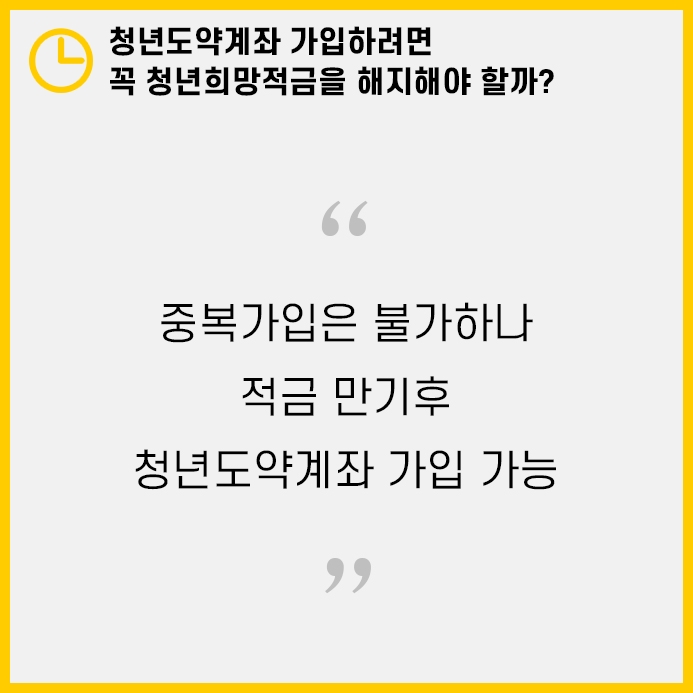 두 금융상품은 청년 목돈 형성이라는 취지가 동일하기 때문에 중복가입이 불가능합니다.