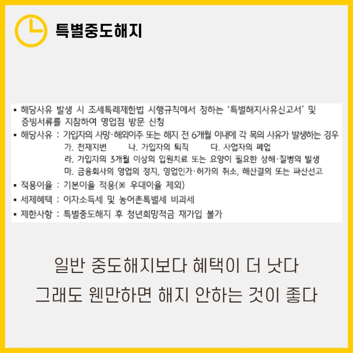 해지하는 사람들이 늘어난만큼 오늘은 청년희망적금 해지 불이익, 특별중도해지 조건은 무엇이 있는지 살펴보겠습니다.