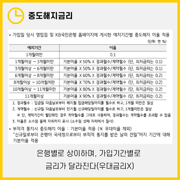 그중에서도 KB국민은행의 중도해지금리로 예시를 들어보도록 하겠습니다.