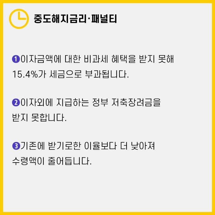 중도해지를 할때 받게될 불이익은 크게 3가지가 있습니다.