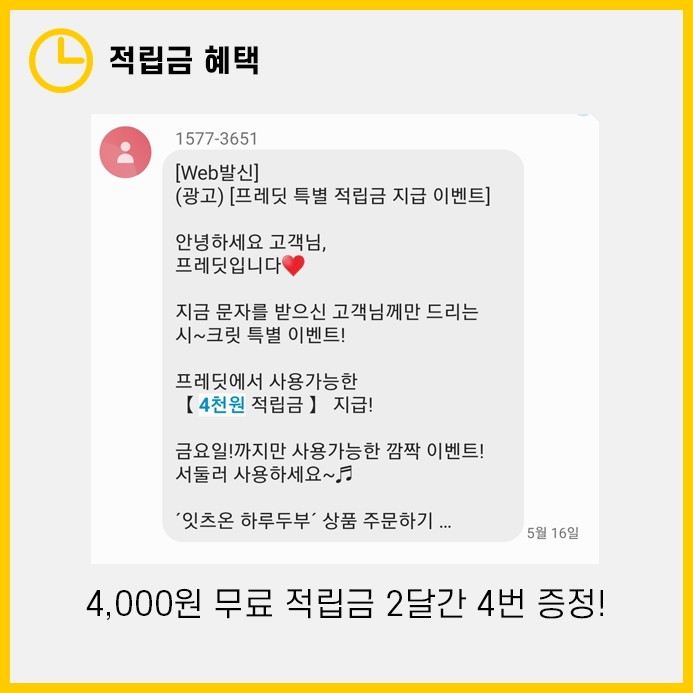 프레딧을 사용할 때 굉장히 좋았던 것은 무료적립금을 자주 지급한다는 점이었습니다.