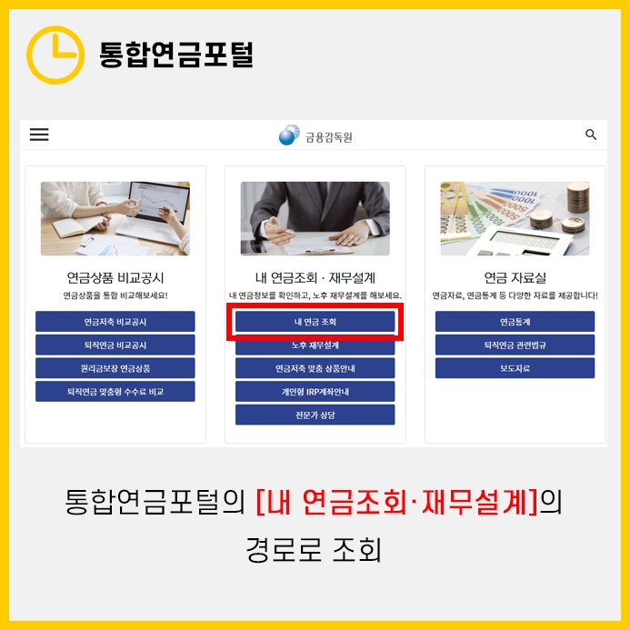2. 통합연금포털: 연금저축과 퇴직연금을 포괄적으로 조회할 수 있습니다.