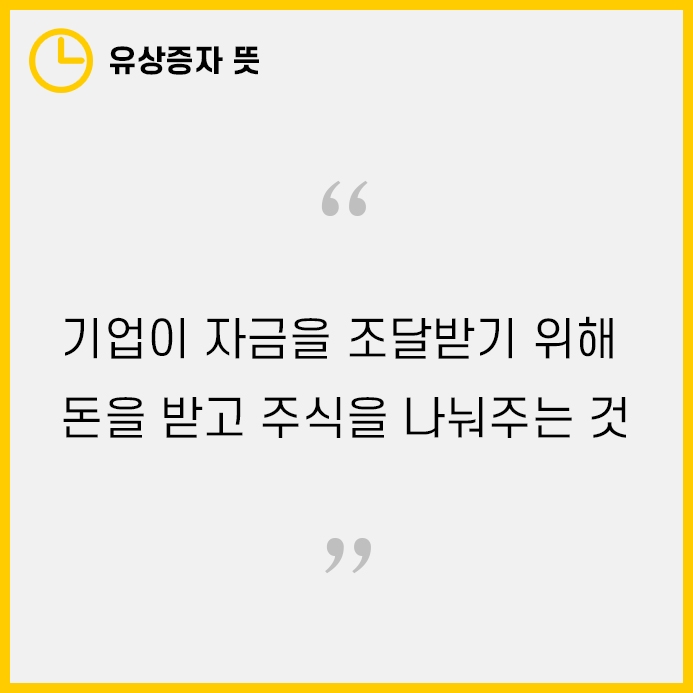 유상증자란 기업이 자금을 조달받기위해 돈을 받고 주식을 나눠주는 것입니다.