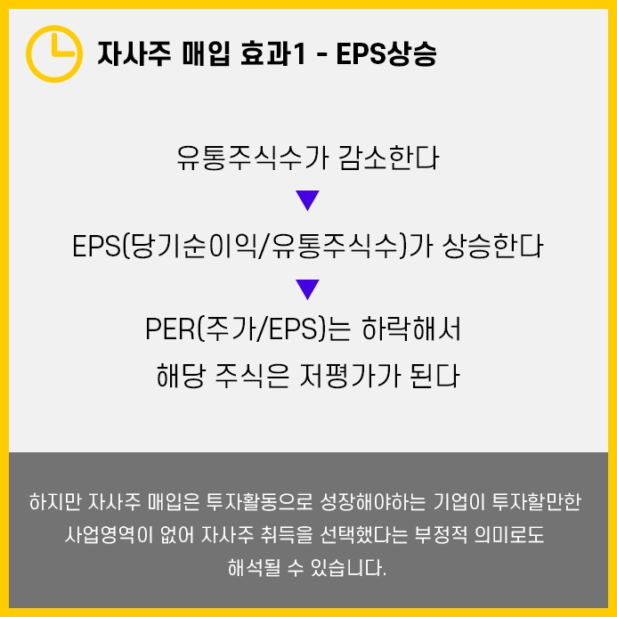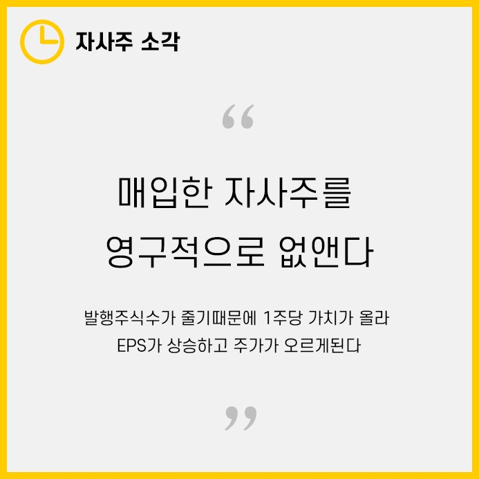 자사주 매입을 하면 유통되는 주식수가 늘어나기 때문에 자연스럽게 EPS가 증가합니다.