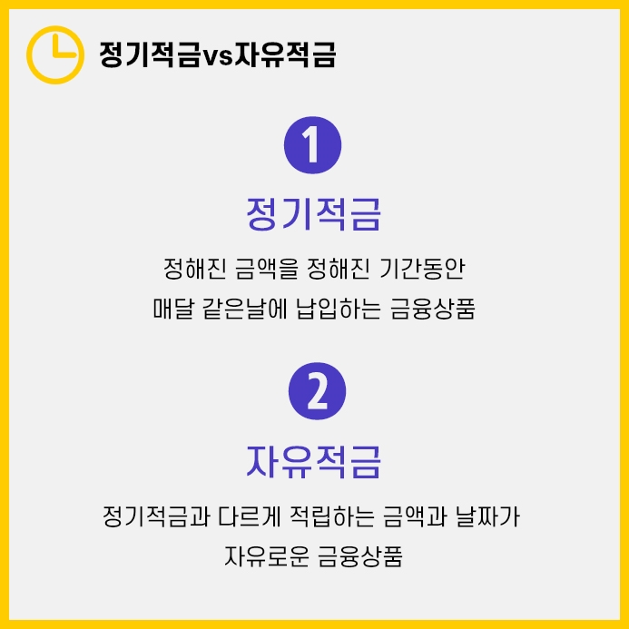정기예금 vs 정기적금 vs 자유적금 차이