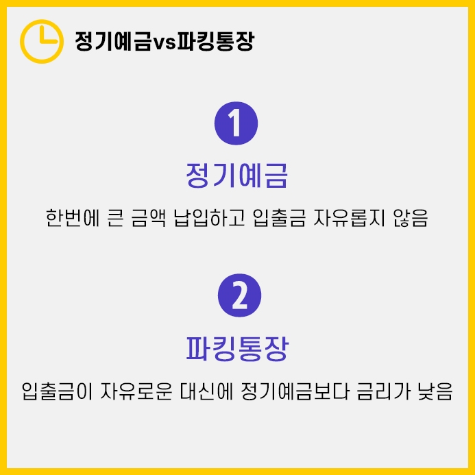 반대로 언제든 손쉽게 입출금할 수 있는 통장을 파킹통장이라고 합니다.
