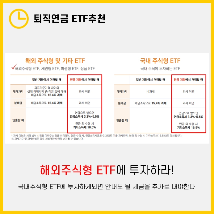 연금계좌에서 ETF를 거래할 때에는 국내주식형보다 해외 ETF에 투자하는 것이 유리합니다.