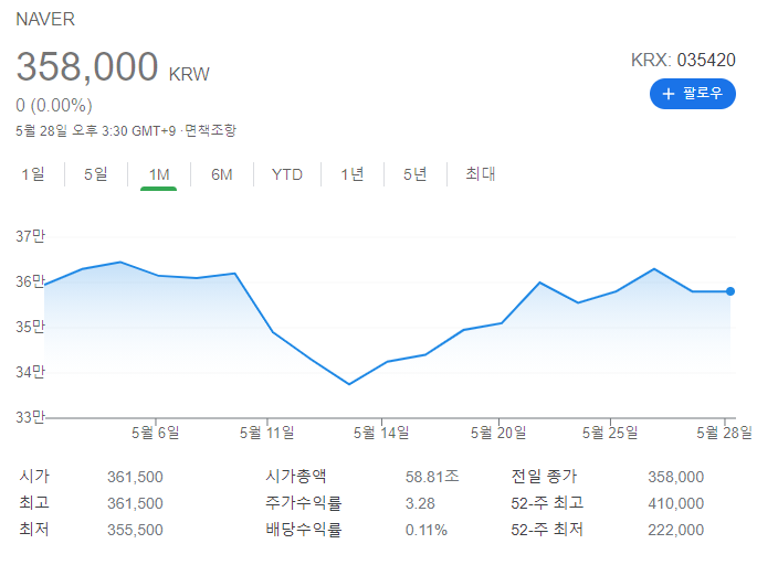 네이버도 마찬가지로 5월동안 급락했다가