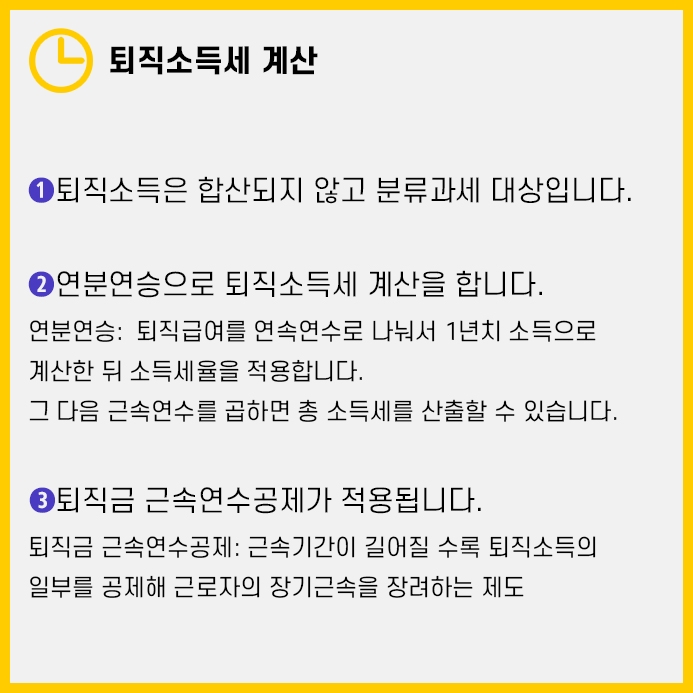 ①퇴직소득은 종합소득에 합산되는 것이 아니라 분류과세합니다.
