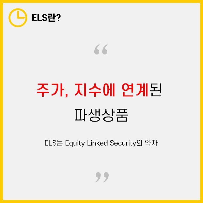 ELS(Equity Linked Security)는 주가, 지수를 추종하는 파생상품의 한 종류입니다.