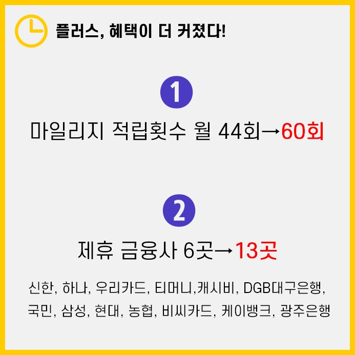 적립횟수가 월 44회에서 60회로 증가합니다.
