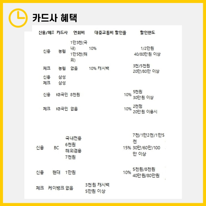 이렇게 카드를 발급받을 수 있는 곳이 많다보니 신한, 국민 카드 등 어떤 카드를 사용할지 고민이될텐데요.