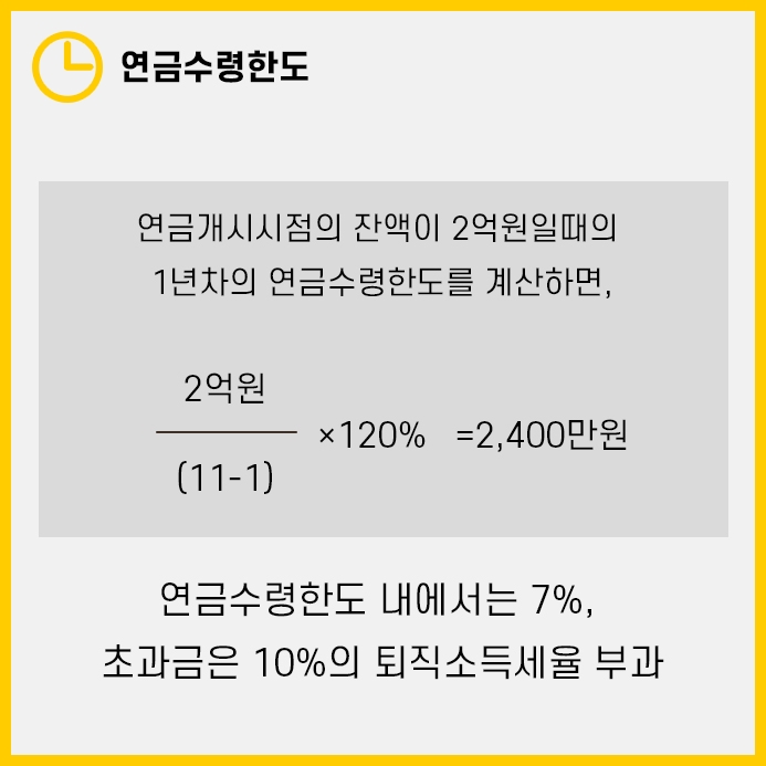 따라서 11년차 미만일 때는 연금액에 한도가 있다는 뜻인데요.