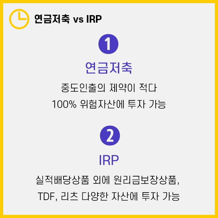 IRP는 연금저축보다 다양한 투자를 할 수 있습니다.