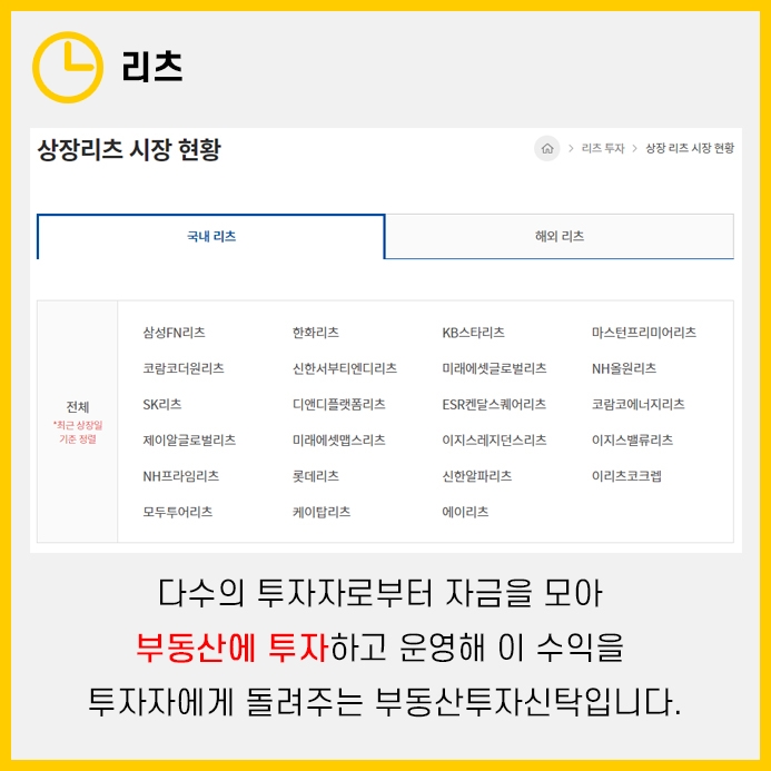 부동산 투자 신탁은 주로 상업용 부동산, 아파트, 호텔, 사무실 건물, 창고 등 다양한 부동산 유형에 투자합니다. 또한, 부동산 투자 신탁은 주식과 유사한 방식으로 거래되며, 일반적인 주식과 마찬가지로 주식시장에서 쉽게 매매할 수 있습니다.