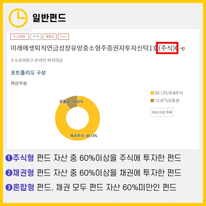 (혼합형 중 주식 비중이 50%이상, 미만이라면 각각 주식혼합형, 채권혼합형이라고 부른다.)