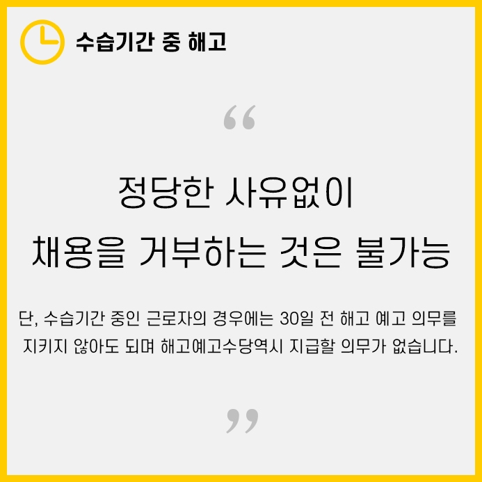 일반적인 직원은 해고 30일 전 예고를 해야하지만 수습 중인 직원에 대해서는 기한 상관없이 해고가 가능합니다.