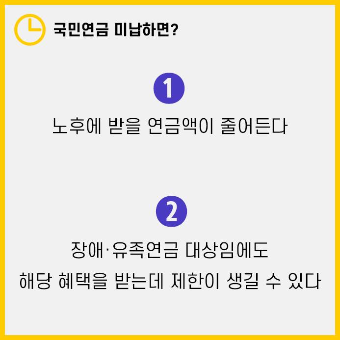 경제적으로 어려울 때는 당장의 납부액을 내지 않는다는 이점이 있지만, 미래의 소중한 노후자금이 그만큼 적어진다는 것을 의미합니다. 또한 장애, 유족연금 대상이 되었을 때 해당 혜택을 온전히 받지 못할 수 있습니다.