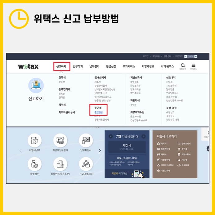 1️⃣위택스: [신고하기] - [주민세] - [종업원분]의 경로로 신고합니다.