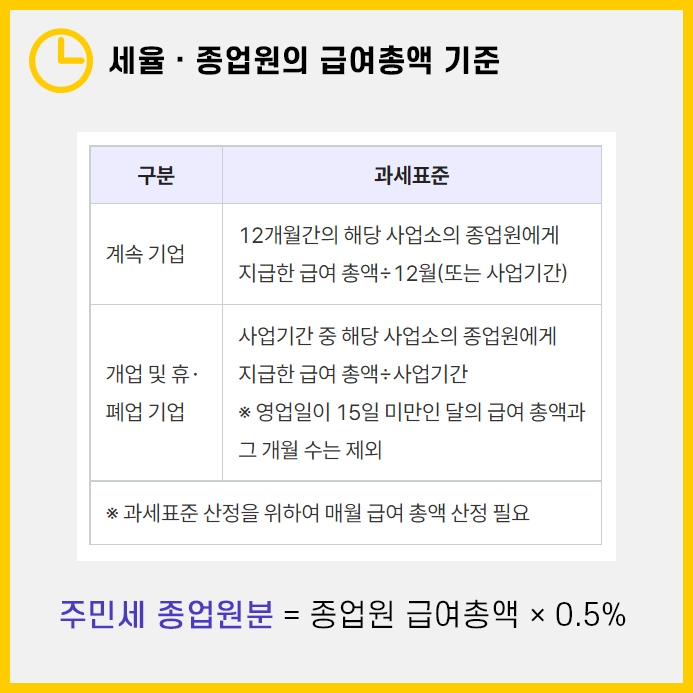 주민세 종업원분은 0.5%로 해당 월의 급여 총액에 적용됩니다.