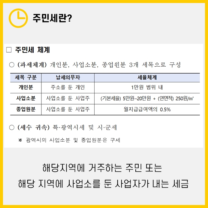 3️⃣ 종업원분: 지자체에 사업소를 둔 사업주를 대상으로 월지급 급여액의 0.5%를 과세합니다.