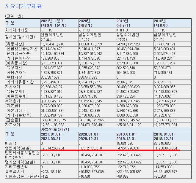 유난히 바이오주 같은 경우에는 적자인 경우가 많이 보이는 것 같습니다. 바이젠셀도 크게 다르지 않았는데요. 2018년부터 2021년까지 적자가 나는 기업입니다. 아무래도 이러한 이유로는 개발비용은 많고 연구 기간이 긴 바이오주의 특성때문이라 생각됩니다. 연구를 해서 최종제품으로 판매될 수 있는 성공 확률또한 낮기 때문에 중간에 엎어지는 연구들도 많습니다.