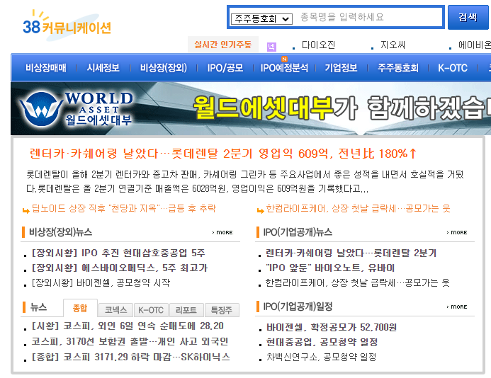 저같은 경우는 38커뮤니케이션을 이용합니다. 보통 38커뮤니케이션은 비상장주식을 매매할 수 있는 사이트로 알려져있는데요. 공모주를 확인할 때에도 아주 용이하더라구요.