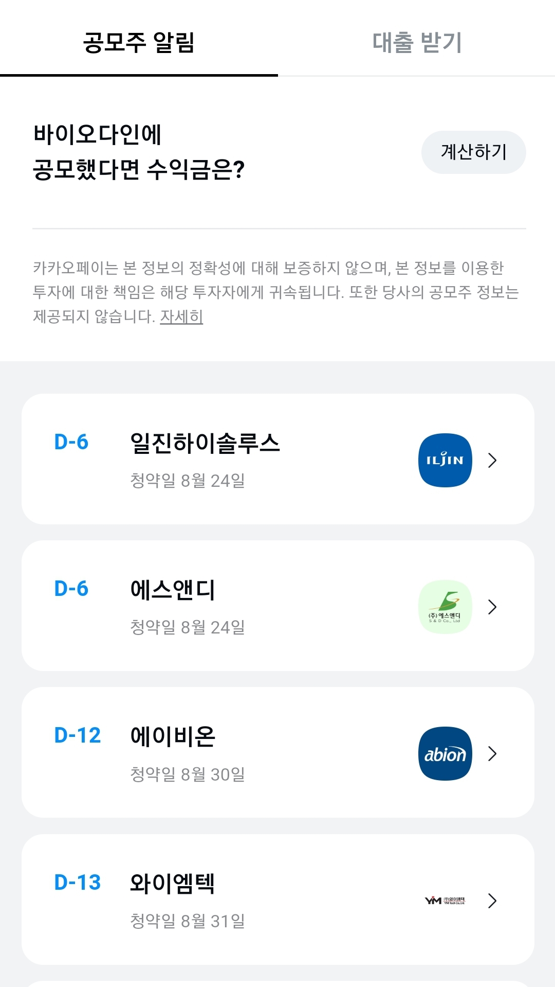카카오페이: 공모주 알림 받는용.