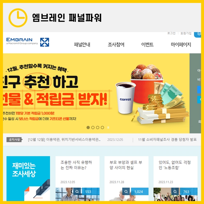 이를 통해 기업은 시장조사 개념으로 소비자의 의견을 수집할 수 있고, 조사 참여자는 편하게 집에서 짬짬히 돈을 벌 수 있다는 장점이 있습니다.