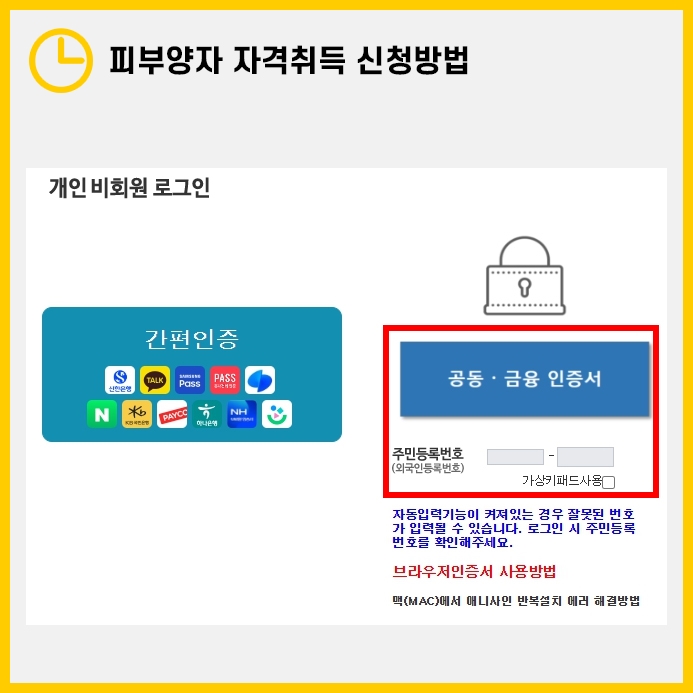 이 과정에서 PC 또는 USB로 공동인증서를 보유하고 있어야 합니다. 그럼 직장가입자의 공동인증서를 클릭하고 비밀번호까지 입력해 로그인을 합니다.