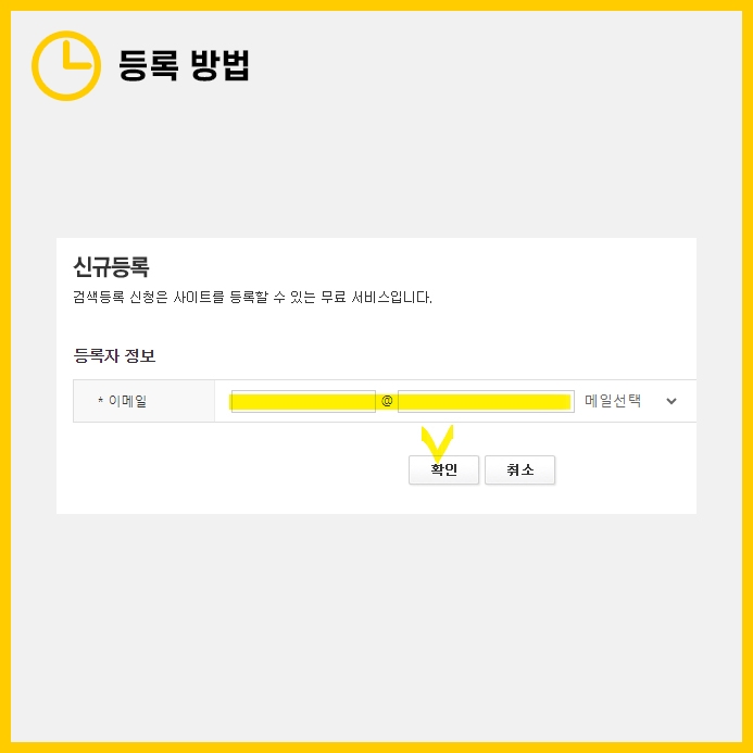 등록이 완료되었다는 메일을 받기위한 본인 메일 주소를 적고 확인을 누릅니다.