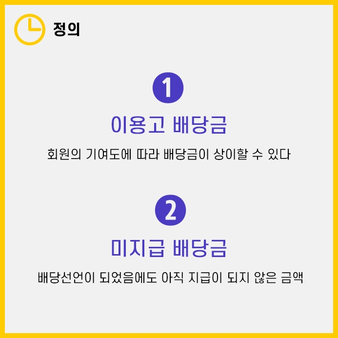 미지급 배당금은 배당이 이미 선언되었음에도 아직 지급되지 않은 금액을 의미합니다. 이는 회원들에게 나중에 배당금이 지급될 것임을 나타냅니다.
