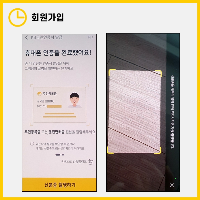 인증이 성공적으로 이뤄지면 주민등록증 or 운전면허증을 촬영하여 어플 내에서 업로드합니다.