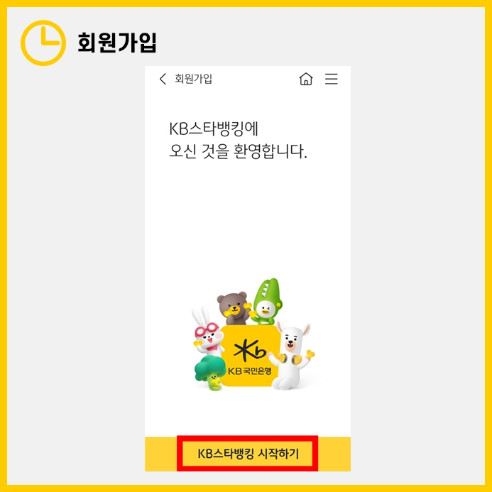 설치가 완료되면 회원가입 단계에 진입합니다. "KB스타뱅킹 시작하기" 버튼을 눌러 진행합니다.