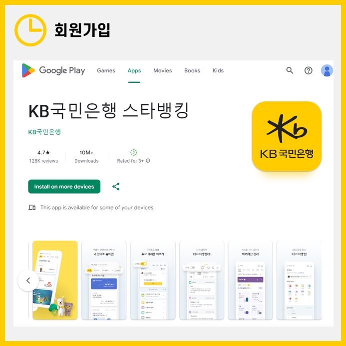 우선, KB스타뱅킹 어플을 플레이스토어나 앱스토어에서 설치합니다.