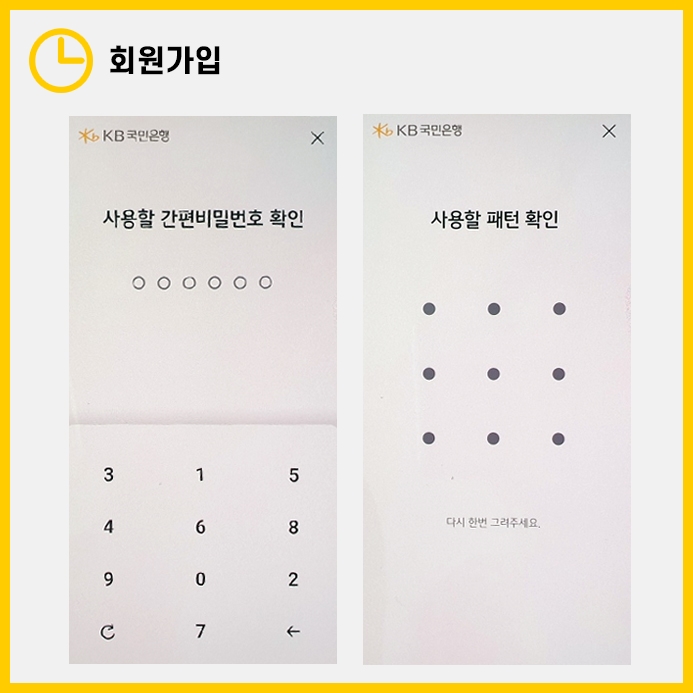 모든 인증이 완료되면 비밀번호 및 패턴을 설정하여 회원가입을 마무리합니다.