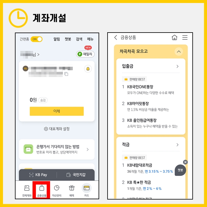 저도 최근 KB국민은행에 괜찮은 적금이 나와 이를 가입하기 위해 부모님의 계좌 개설을 도와드렸습니다. 오늘은 어떻게 하면 지점을 방문하지 않고 비대면으로 간단하게 KB국민은행 통장을 개설할 수 있는지에 대해 살펴보도록 하겠습니다.