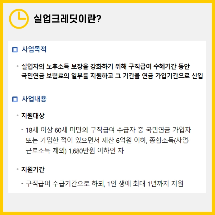 이번에는 이 제도를 이용하는 방법에 대해 알아보겠습니다. 실업크레딧이란 무엇이고, 어떻게 신청하고 해지하며, 자동이체로 납부하는 방법은 무엇인지 설명드리겠습니다.