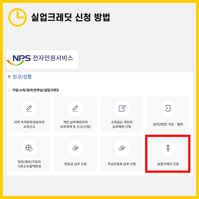 온라인으로 신청하려면 국민연금공단 홈페이지에서 로그인하고 ‘실업크레딧 신청’을 클릭하면 됩니다. 저는 오프라인 신청이 더 간편하고 편리하다고 생각합니다.