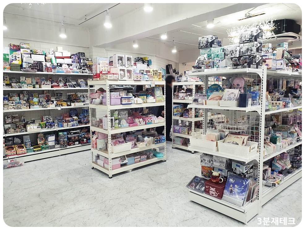 저는 일본에서 애니굿즈샵을 자주 가봐서 그런지 공간이 좀 작다고 느꼈습니다. 하지만 작은 공간에도 애니 팬들이 좋아할 만한 것들이 다 있었습니다.