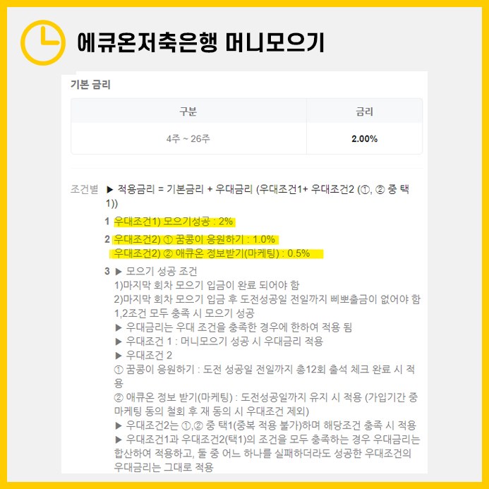 이 상품은 최대 1천만원까지 가입할 수 있으며, 입출금도 가능합니다. 하지만 마지막 모으기 이후 만기일 전날까지 출금을 하면 우대금리 2%를 잃게 됩니다. 그러므로 적금과 비슷하다고 생각하시는 것이 좋습니다.