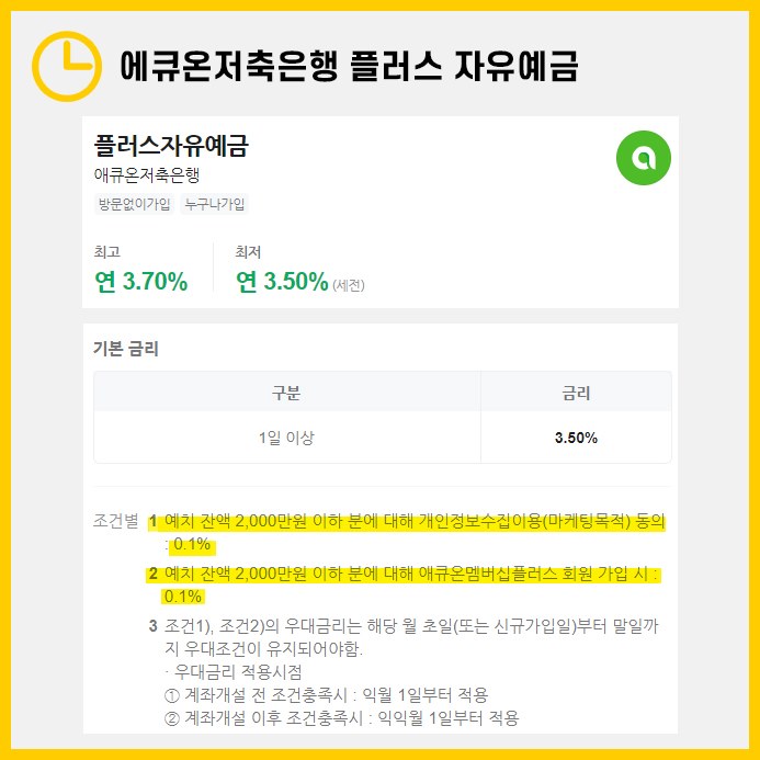 📌3위: 플러스 자유예금(에큐온저축은행)