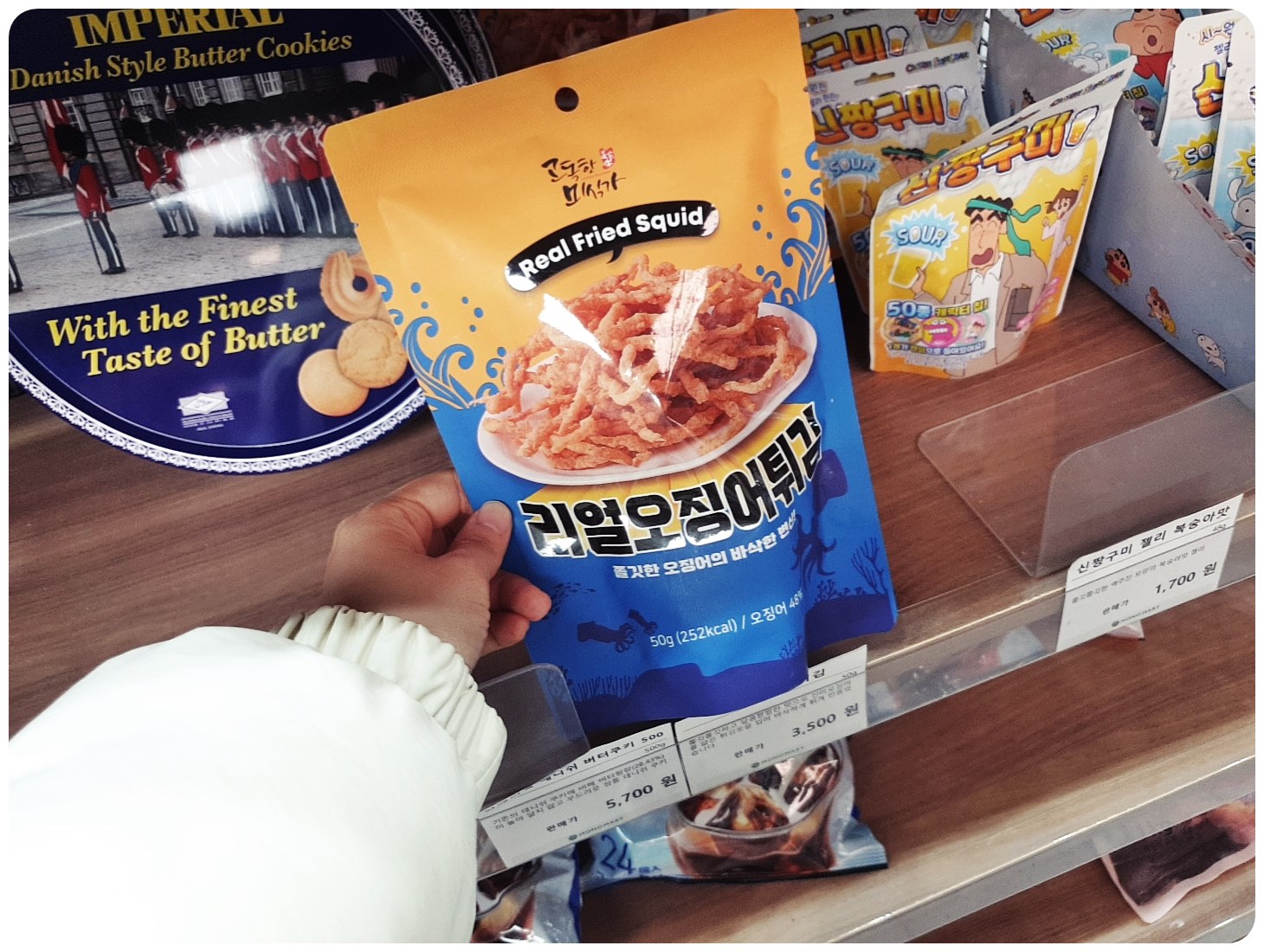 그리고 저는 오징어 튀김 스낵이라는 것에도 관심이 갔어요. 예전에 인터넷에서 이 스낵이 유행했을 때부터 궁금했는데, 너무 비싸서 망설였거든요.