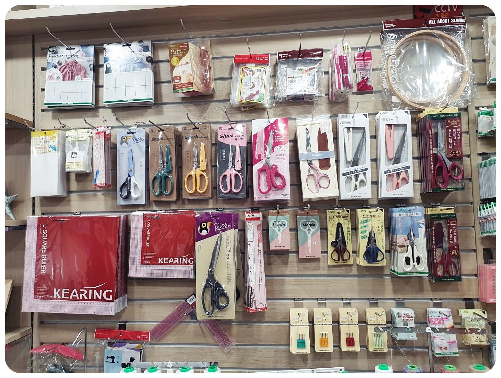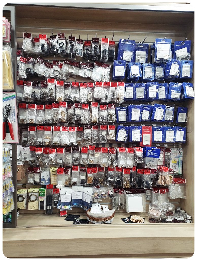 또한 재봉에 필요한 도구들도 한 곳에 모아져 있어서 편리합니다. 도구부터 의류 원단, 고리, 레이스 등 부자재까지 발아프게 돌아다니지 않고 쉽게 한 곳에서 구입할 수 있습니다.