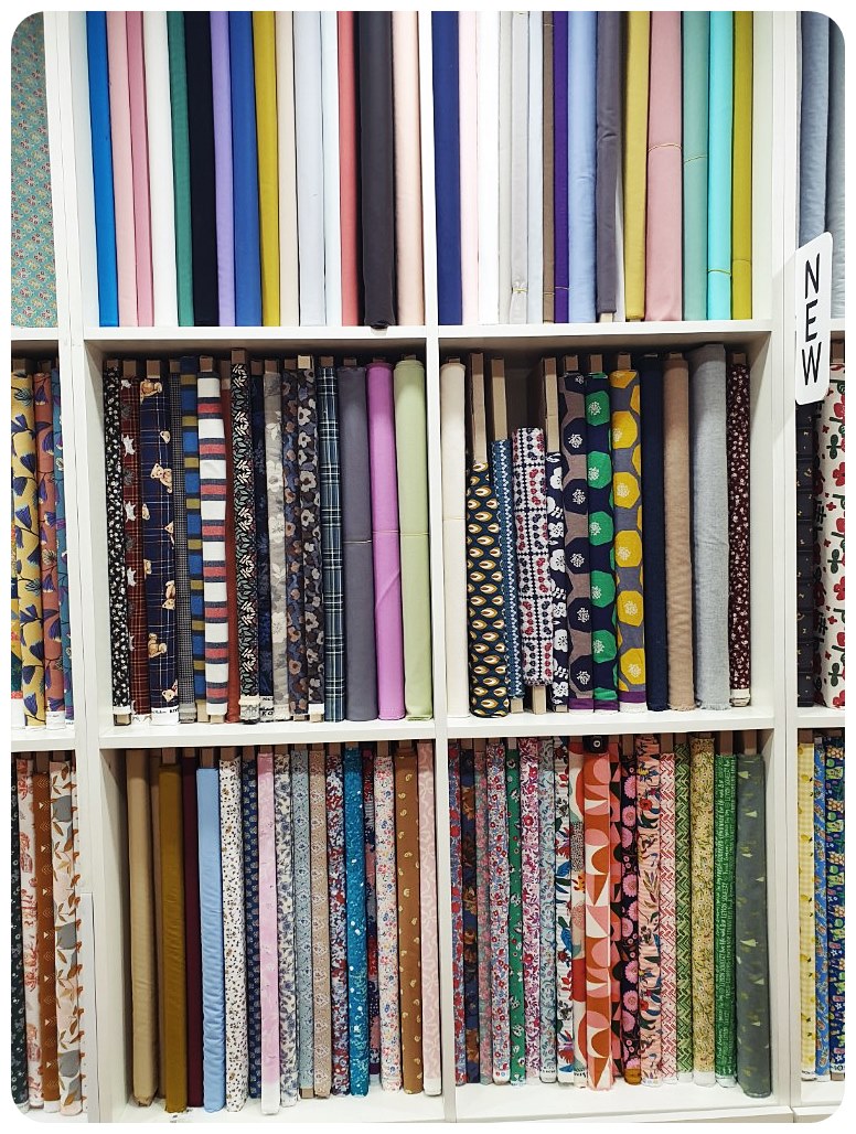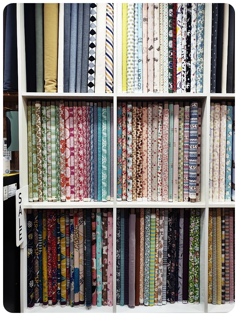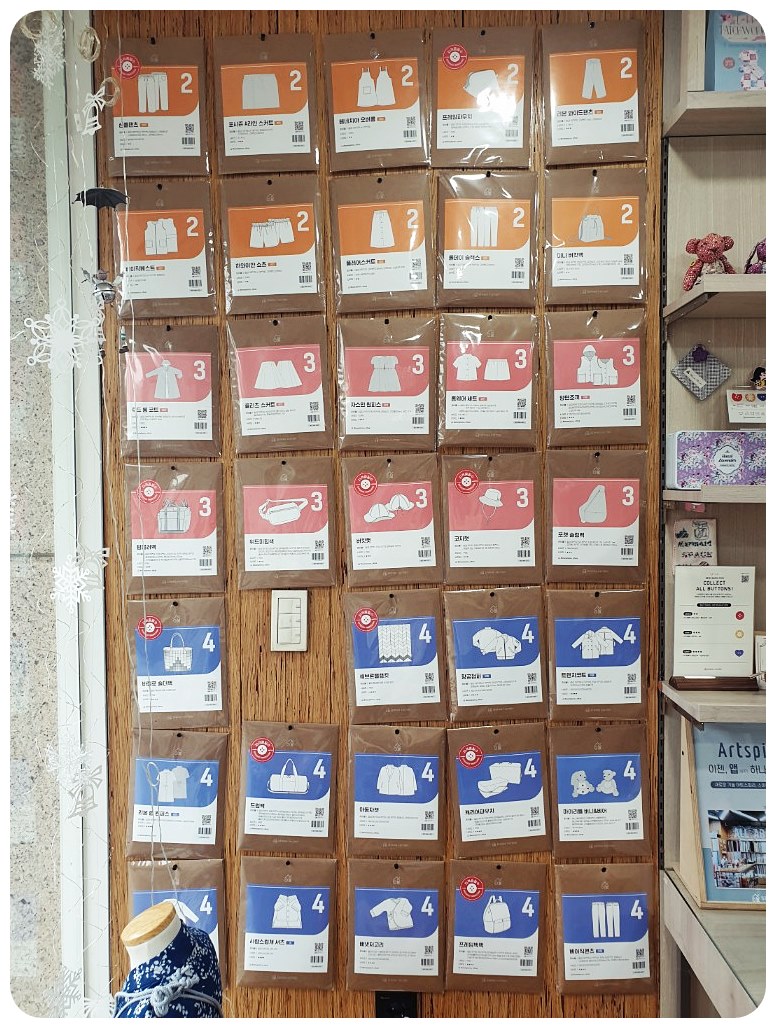그리고 옆쪽에는 수업용 원단 패턴들이 진열되어 있었습니다. 이곳에서 재봉을 배우는 학생들을 위한 서비스인 것 같았습니다.