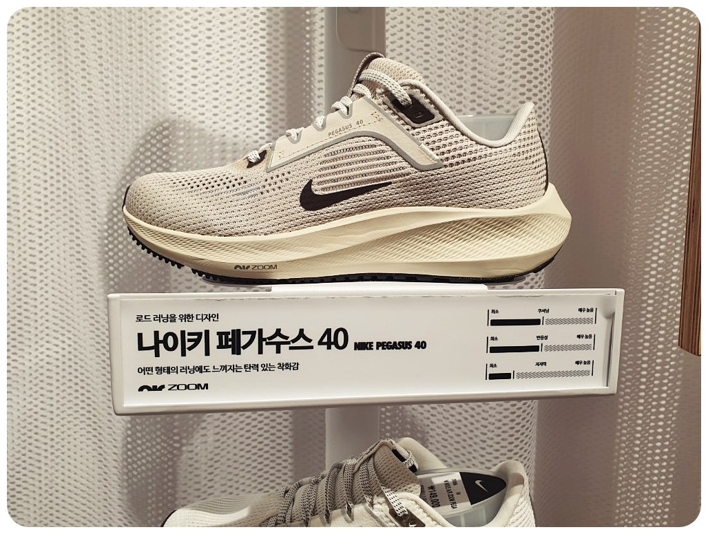 추가로 직원분께서 페가수스40도 권해주셨습니다. 하지만 제가 신는 사이즈는 이미 다 팔려서 신어볼 수 없었습니다.