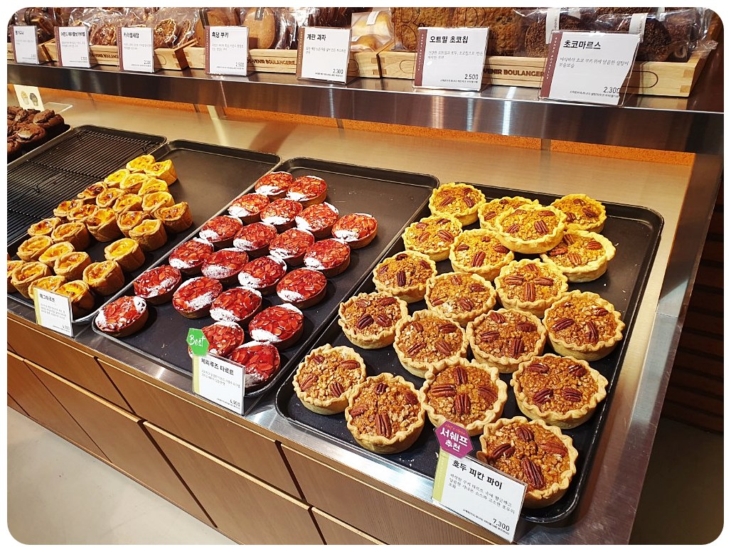 타르트 종류가 눈에 띄었습니다. 특히 호두 피칸 파이는 정말 맛있어 보였습니다.
