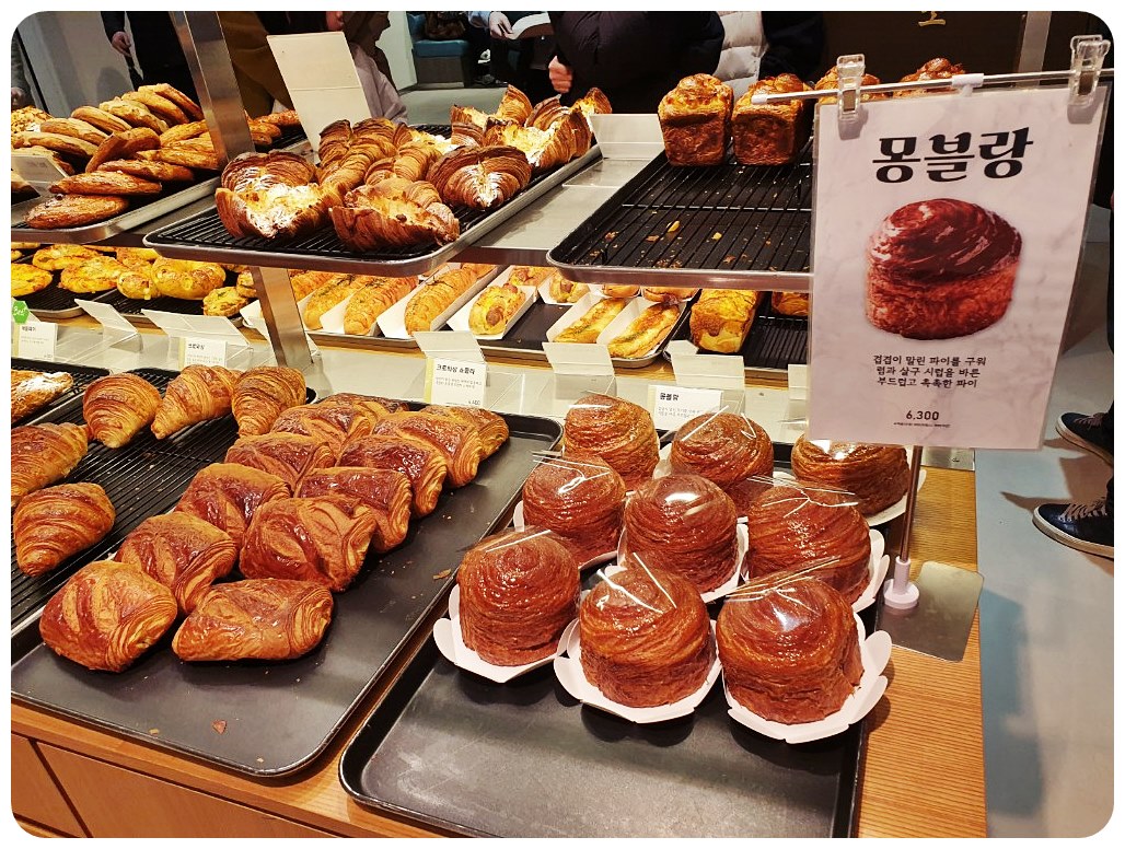 가게 안으로 들어서자, 눈앞에 펼쳐진 것은 맛있어 보이는 빵들의 향연이었습니다. 기본적인 몽블랑부터 시작해, 다양한 종류의 빵들이 가득했어요.